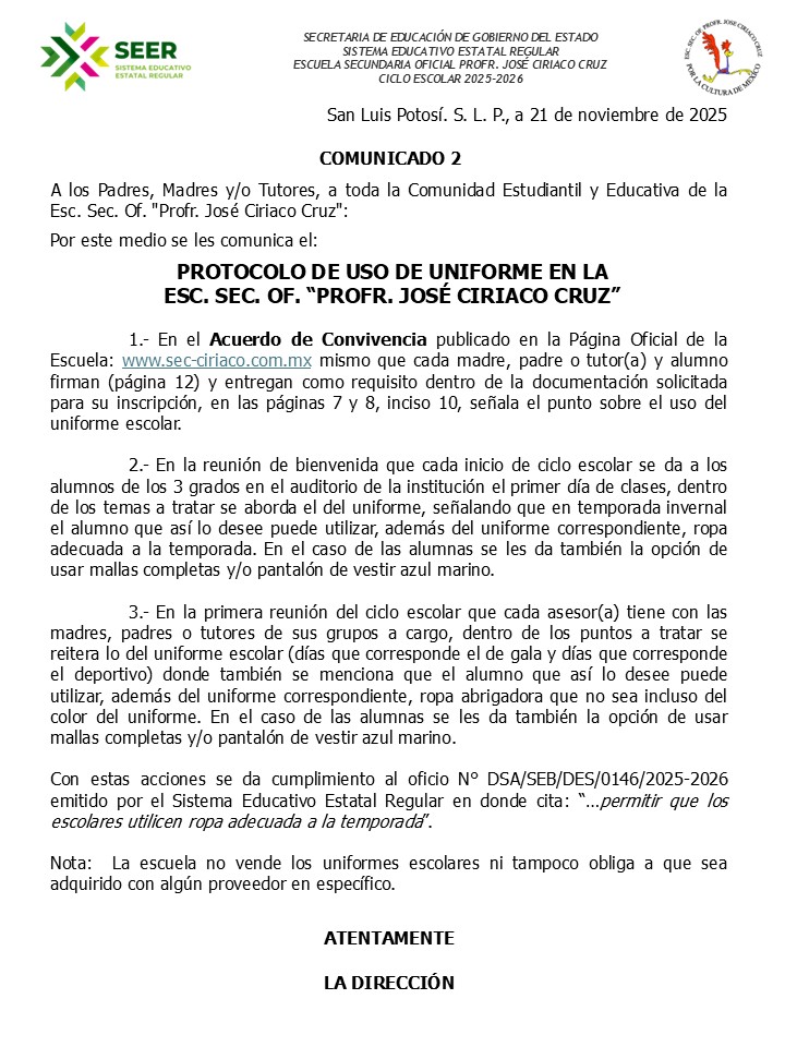 COMUNICADOS CICLO ESCOLAR 2025-2026 |